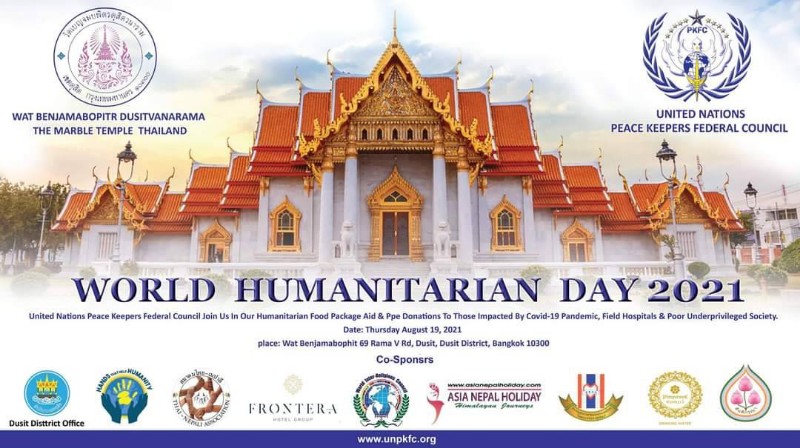 สภาสหพันธ์รักษาสันติภาพสหประชาชาติ กับวันมนุษยธรรมโลก (World Humanitarian Day) United Nations Peace Keepers Federal Council (UNPKFC) สภาสหพันธ์รักษาสันติภาพสหประชาชาติ แจกอาหารช่วยเหลือโควิด-19 เนื่องในวันมนุษยธรรมโลก ประจำปี 2564 (Humanitarian Day 2021) วันที่ 19 สิงหาคม 2564 ณ.วัดเบญจมบพิตรดุสิตวนาราม กรุงเทพมหานคร ประเทศไทย