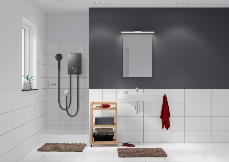 เครื่องทำน้ำอุ่นรุ่น XG SUPER BLACK มาพร้อมรูปโฉมที่เพรียวบางเป็นพิเศษเพียง 7.3 เซนติเมตร และยังออกแบบมาเพื่อรองรับกับการติดตั้งแม้ในห้องน้ำที่มีพื้นที่จำกัด อีกทั้งตัวเครื่องสีดำที่มาพร้อมกับหัวฝักบัว STIEBEL AQUA สีดำด้านยังให้ลุคสุดมินิมัลเข้ากันได้ดีไม่ว่าห้องน้ำจะดีไซน์แบบไหนก็เข้ากันได้อย่างลงตัว โดยหัวฝักบัวที่มาพร้อมกันนี้นอกจากจะให้แรงดันน้ำที่สม่ำเสมอช่วยประหยัดค่าน้ำได้แล้ว ยังสามารถปรับระดับความแรงน้ำได้ถึง 5 ระดับ ช่วยให้ผู้ใช้เพลิดเพลินกับการอาบน้ำได้มากยิ่งขึ้น