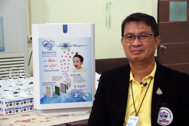 โดยใช้เวลาถึง 3 ปี จนประสบผลสำเร็จ ในเครื่องฟอกอากาศที่ประดิษฐ์ขึ้นจะมีชั้นกรองถึง 3 ชั้น คือ ชั้นแรกเป็นไส้กรองพลาสติกผสมกับอนุภาคนาโนซิลเวอร์ (มีคุณสมบัติในการกำจัดเชื้อแบคทีเรีย) เพื่อดักจับฝุ่นละอองและเชื้อที่มีขนาดใหญ่) ชั้นที่สองจะเป็นไส้กรองที่ทำด้วย Hepa Filter – H 13 มีคุณสมบัติในการกรองฝุ่นละอองขนาดเล็กได้ถึง 0.3 ไมครอน สามารถป้องกันละอองฝุ่น PM 2.5 ซึ่งเป็นชนิดเดียวกับที่ใช้ทำหน้ากาก N-95 ที่ใช้อยู่ในปัจจุบัน สำหรับชั้นสุดท้ายเป็นเทคโนโลยีไบโพลาร์ ไอออนไนเซอร์ ซึ่งทำหน้าท่ี่ผลิตสารฆ่าเชื้อแบคทีเรียและเชื้อโรคที่อยู่รอบตัว เมื่อเปิดเครื่องฟอกอากาศจะเกิดปฏิกิริยาไฟฟ้าเคมีกระตุ้นให้ออกซิเจนในอากาศแตกตัวไปเป็นขั้นบวกและลบ โดยออกซิเจนส่วนหนึ่งจะไปรวมตัวกับความชื้นของน้ำในอากาศแล้วเปลี่ยนเป็น ไฮโดรเจนเปอร์ออกไซด์ และรวมตัวกับไฮโดรเจนกลายเป็นไฮดร็อกซิลหรือแอลกอฮอล์ แต่จะอยู่ในสถานะเป็นก๊าซ ซึ่งในทางการแพทย์เราใช้สารทั้งสองตัวนี้ในการล้างแผลและฆ่าเชื้อโรค สารทั้งสองตัวนี้จะสามารถฆ่าแบคทีเรียและเชื้อโรคที่อยู่ในอากาศได้ ปัจจุบันมีการผลิตเครื่องฟอกอากาศนี้แจกจ่ายไปตามโรงพยาบาลและสถานพยาบาลต่างๆ เพื่อช่วยเหลือและใช้ป้องกันเชื้อโรคให้กับบุคลากรที่อยู่ด่านหน้า เช่นโรงพยาบาลกลาง โรงพยาบาลธรรมศาสตร์เฉลิมพระเกียรติ โรงพยาบาลตากสิน โรงพยาบาลรามาธิบดี โรงพยาบาลตำรวจ โรงพยาบาลพุทธโสธร 6 ศูนย์เอราวัณ สำนักงานตำรวจแห่งชาติ สำนักงานตรวจคนเข้าเมือง และสภากาชาดไทย