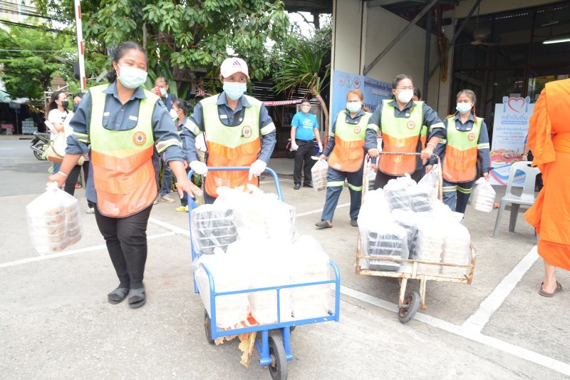 นอกจากนี้ ยังมีผู้มีจิตกุศลนำอาหารมาร่วมสมทบและมีจิตอาสา มูลนิธิ และภาคประชาสังคมมาช่วยดำเนินการส่งมอบในพื้นที่เพื่อให้เข้าถึงชุมชนและลดการแออัด โดยประชาชนไม่ต้องออกจากที่พักอาศัยเพื่อมารับ ช่วยลดความเสี่ยงในการติดเชื้อและลดการแพร่ระบาดของเชื้อไวรัสโควิด-19 อีกด้วย