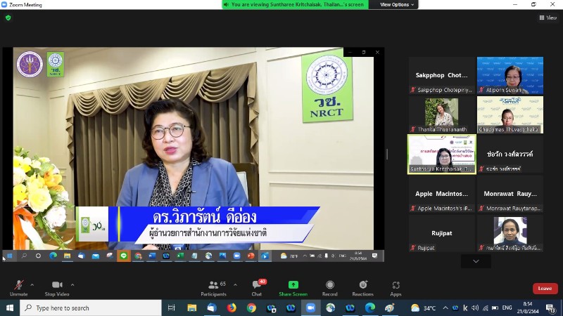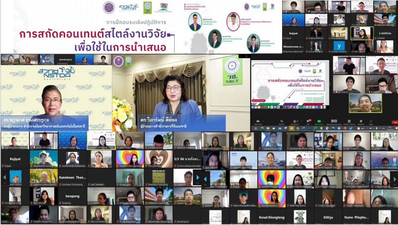วันที่ 21 สิงหาคม 2564 ดร.วิภารัตน์ ดีอ่อง ผู้อำนวยการ สำนักงานการวิจัยแห่งชาติ เป็นประธานในพิธีเปิดการฝึกอบรมเชิงปฏิบัติการออนไลน์ เรื่อง “การสกัดคอนเทนต์สไตล์งานวิจัยเพื่อใช้ในการนำเสนอ” จัดโดย สำนักงานการวิจัยแห่งชาติ (วช.) ร่วมกับ สำนักงานพัฒนาวิทยาศาสตร์และเทคโนโลยีแห่งชาติ (สวทช.) ภายใต้กระทรวงการอุดมศึกษา วิทยาศาสตร์ วิจัยและนวัตกรรม (อว.) ในรูปแบบออนไลน์