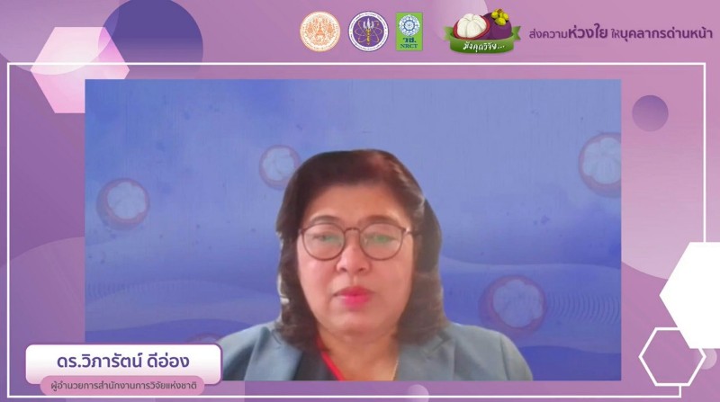 ดร.วิภารัตน์ ดีอ่อง ผู้อำนวยการสำนักงานการวิจัยแห่งชาติ กล่าวว่า จากสถานการณ์การแพร่ระบาดของโรคติดเชื้อไวรัสโคโรนา 2019 หรือโควิด 19 ในประเทศไทยที่มีความรุนแรงในขณะนี้ สำนักงานการวิจัยแห่งชาติ (วช.) ภายใต้กระทรวงการอุดมศึกษา วิทยาศาสตร์ วิจัยและนวัตกรรม (อว.) ได้ตระหนักถึงปัญหาดังกล่าว จึงวางเป้าหมายการวิจัยและพัฒนา ให้ตอบโจทย์ตามแผนพัฒนาประเทศที่ตอบโจทย์ตามแผนพัฒนาเศรษฐกิจและสังคมแห่งชาติ และเพื่อส่งเสริมความเข้มแข็งแก่เศรษฐกิจ วช. ใช้องค์ความรู้จากงานวิจัย