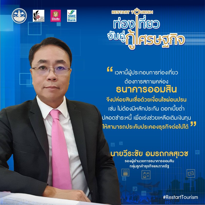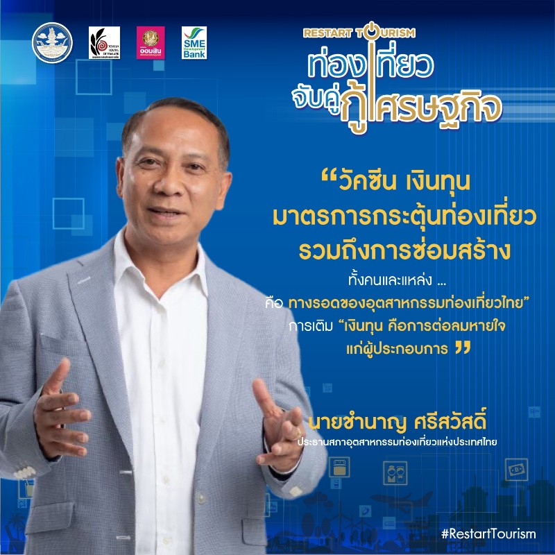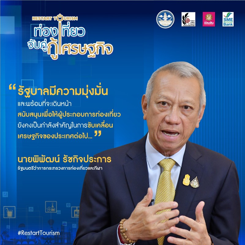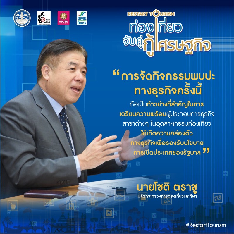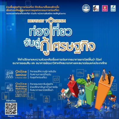 กระทรวงการท่องเที่ยวและกีฬา ร่วมกับหน่วยงานพันธมิตร ได้แก่ สภาอุตสาหกรรมท่องเที่ยวแห่งประเทศไทย ธนาคารออมสิน และธนาคารพัฒนาวิสาหกิจขนาดกลางและขนาดย่อมแห่งประเทศไทย ในการตอบรับนโยบายการเตรียมความพร้อมผู้ประกอบการอุตสาหกรรมท่องเที่ยวสำหรับเปิดประเทศ และปรับกลยุทธ์ในการทำงานให้สอดคล้องกับสถานการณ์ โดยจัดโครงการ “ท่องเที่ยวจับคู่ กู้เศรษฐกิจ Restart Tourism” ให้กับผู้ประกอบการในอุตสาหกรรมท่องเที่ยวจาก 13 สาขาวิชาชีพ ซึ่งเป็นสมาชิกของสภาอุตสาหกรรมท่องเที่ยวแห่งประเทศไทย ที่ประสบปัญหาในการสนับสนุนด้านเงินทุนจากภาครัฐ ให้ได้พูดคุยและเจรจากับธนาคารพาณิชย์ในรูปแบบออนไลน์ หรือ Online Business Matching อีกทั้งยังปรับรูปแบบการให้ความรู้ในการปรับกลยุทธ์ และกลวิธีสู่การฟื้นฟูอุตสาหกรรมการท่องเที่ยว ในรูปแบบงานสัมมนาออนไลน์ โดยโครงการนี้จะสามารถสนับสนุนและช่วยเหลือผู้ประกอบการในอุสาหกรรมการท่องเที่ยวทั้งขนาดกลางและขนาดย่อมของไทยให้เกิดความคล่องตัวทางธุรกิจ พัฒนาและปรับตัวสู่ยุค New Normal หรือ ชีวิตวิถีใหม่ เตรียมความพร้อมต่อการกลับมาประกอบธุรกิจท่องเที่ยวและรองรับการท่องเที่ยวตามนโยบายการเปิดประเทศ