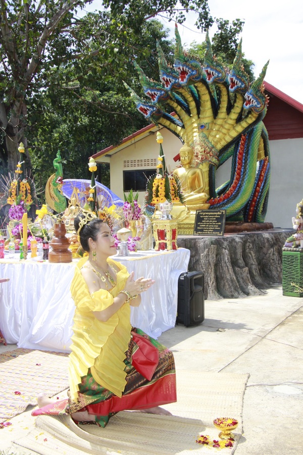 มีพระครูปลัดปรีชา ฐานุตตโร เจ้าอาวาสคอยและชาวบ้านให้การต้อนรับชาวคณะผ้าป่า ก่อนที่จะเริ่มพิธีทอดผ้าป่าสามัคคีนั้นได้มีการบวงสรวงถวายสักการะบูชาพระพุทธมงคงมุจลินท์(พญานาคมุจลินท์)