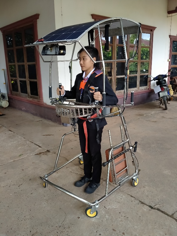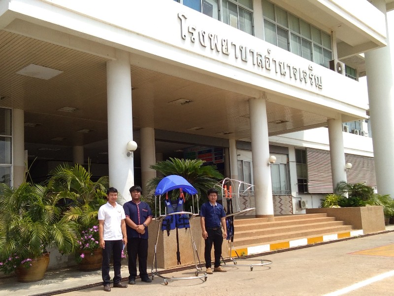 นายศักนรินทร์ ผิวเหลือง อาจารย์ประจำแผนกเทคโนโลยีคอมพิวเตอร์ แห่งวิทยาลัยเทคนิคอำนาจเจริญ กล่าวว่า Modern Walk อุปกรณ์ช่วยพยุงเดินป้องกันการหกล้ม ด้วยระบบสปริง 2+2 ทิศทาง เป็นอุปกรณ์ช่วยพยุงเดินสำหรับผู้สูงอายุ มีหลักในการสร้างและออกแบบโดยออกแบบยึดตามโครงสร้างของร่างกายมนุษย์กล่าวคือ สามารถปรับความสูงต่ำได้ตามโครงสร้างร่างกายของผู้ใช้งาน ใช้ระบบป้องกันการหกล้มด้วยระบบสปริงแบบแยกส่วนได้ โดยสปริง 2 ตัวแรกจะยึดเข้ากับเข็มขัดที่อยู่ที่ตำแหน่งเอวและสปริงอีก 2 ตัวจะยึดเข้ากับเข็มขัดที่มีลักษณะคล้ายเสื้อกั๊ก มีตะขอเกี่ยวที่ตำแหน่งบ่าไหล่ทั้งสองข้างยึดเข้ากับโครงสร้างส่วนบน ซึ่งทั้งสองส่วนสามารถถอดแยกส่วนการใช้งานหรือใช้งานร่วมกันทั้งสองส่วนได้ โครงสร้างทั้งหมดเป็นสแตนเลส เกรด 304 มีข้อดี คือ มีน้ำหนักเบาไม่เป็นสนิม มีระบบเบรกมือซ้ายขวาและมีเบาะพับเก็บได้ในตัว ในกรณีผู้ใช้งานต้องการนั่งพักได้ออกแบบมือจับทั้งด้านหน้าและด้านหลัง กรณีที่ผู้ใช้งานต้องการให้ผู้ดูแลหรือญาติช่วยเข็น โดยผู้สูงอายุขึ้นนั่งที่เบาะและผู้ดูแลสามารถเข็นไปในที่ต้องการได้อย่างสะดวก