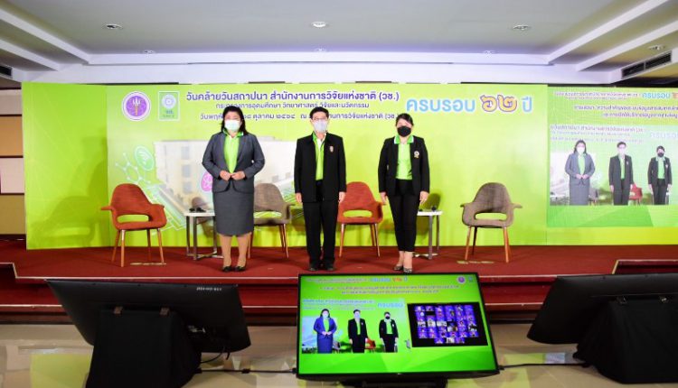 เมื่อวันที่ 28 ตุลาคม 2564 สำนักงานการวิจัยแห่งชาติ (วช.) กระทรวงการอุดมศึกษา วิทยาศาสตร์ วิจัยและนวัตกรรม (อว.) จัดเสวนาความสำคัญของระบบข้อมูลสารสนเทศ ด้านวิทยาศาสตร์ วิจัยและนวัตกรรมของประเทศ และการเปิดให้บริการข้อมูลจากฐานข้อมูลกลางด้าน ววน.ของประเทศ เนื่องในโอกาสวันคล้ายวันสถาปนาสำนักงานการวิจัยแห่งชาติ (วช.) ครบรอบ 62 ปี โดยมี ศ.กิตติคุณ นพ.สุทธิพร จิตต์มิตรภาพ ประธานกรรมการส่งเสริมวิทยาศาสตร์ วิจัยและนวัตกรรม ดร.วิภารัตน์ ดีอ่อง ผู้อำนวยการสำนักงานการวิจัยแห่งชาติ และ ผศ.ดร.สุภาภรณ์ เกียรติสิน หัวหน้าโครงการพัฒนาระบบข้อมูลสารสนเทศ วิจัยและนวัตกรรมแห่งชาติ มหาวิทยาลัยมหิดลให้เกียรติร่วมเสวนา