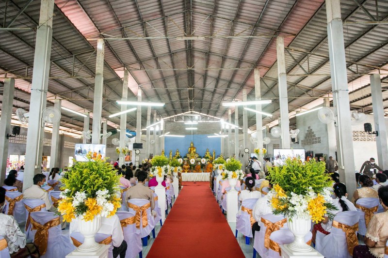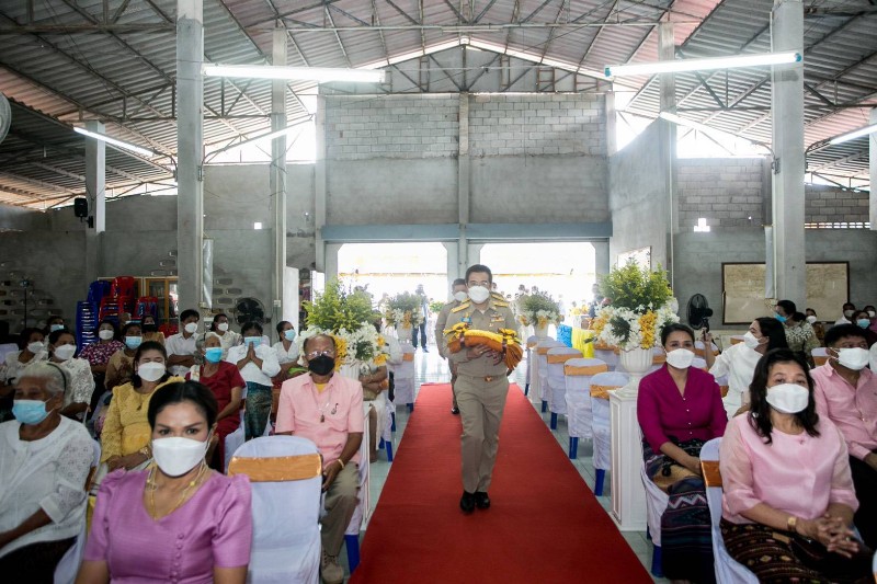 หม่อมหลวงนารีธรรม ศรีธวัช ผู้พิพากษาศาลอุทรณ์ ภาค7 ประธานพิธีจุดธูปเทียนบูชาพระรัตนตรัย นางชมพูนุท สาตรวาหา ผู้พิพากษาหัวหน้าคณะศาลแรงงานกลาง ถวายผ้าไตรคู่สวด นายเกรียงไกร จงเจริญ ผู้อำนวยการสำนักการศึกษา กรุงเทพมหานคร ถวายบริวารผ้าพระกฐินแด่พระสงฆ์ โดยมีคณะผู้พิพากษาสมทบศาลเยาวชนและครอบครัวจังหวัดสมุทรสาคร เข้าร่วมพิธีถวายผ้าพระกฐินครั้งนี้จำนวนมาก และมีพี่น้องประชาชนเข้าร่วมงานตามสถานการณ์การแพร่ระบาดของเชื้อโควิด-19 มีการคุมเข้มและคัดกรองอย่างเคร่งครัด ยังมีศิลปินดาราเช่น เก่ง ชัชวาล เพชรวิศิษฐ์และ แพทริค นิพัช เจริญผลเข้าร่วมบุญในครั้งนี้ ด้วยแรงแห่งศรัทธาของพุทธศาสนิกชน และการระมัดระวังไม่ให้เกิดการติดเชื้อของไวรัสโควิด-19 โรงพยาบาลธนบุรี สาขาทุ่งสง ได้ส่งบุคลากรให้บริการตรงจุดคัดกรองสร้างความมั่นใจถึงมาตรการการป้องกัดของโรคติดเชื้อไวรัสโควิด-19 และ บริษัท โตโยต้าสาขาทุ่งสง ได้จัดอาหารกล่อง บริการผู้เข้าร่วมบุญกฐิน อิ่มท้อง อิ่มบุญไปตามๆ กัน