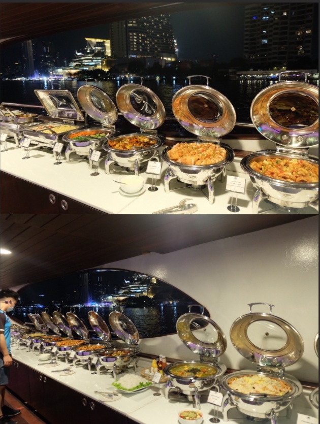 – บัตรบุฟเฟ่ต์นานาชาติมื้อค่ำ + ล่องเรือ 19:30 ราคา 890 บาท สำหรับเด็กอายุ 4-10 ปี ราคา 690 บาท และฟรีสำหรับเด็กอายุต่ำกว่า 4 ปี