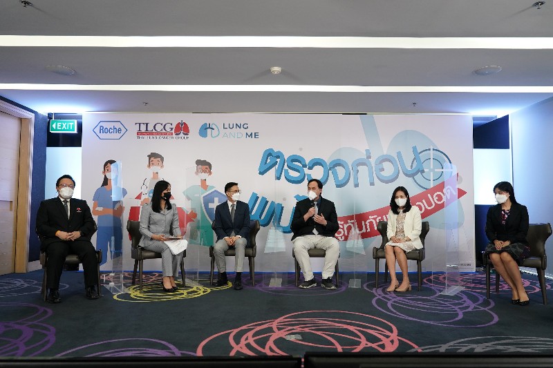 กรุงเทพฯ ประเทศไทย – เดือนมะเร็งปอดโลกซึ่งตรงกับเดือนพฤศจิกายนของทุกปี เป็นเดือนที่ทั่วโลกร่วมตระหนักถึงภัยของมะเร็งปอด โรคร้ายที่จัดเป็นปัญหาสำคัญทางสาธารณสุขอันดับต้น ๆ ของโลกและประเทศไทย เนื่องจากมะเร็งปอดมักไม่แสดงอาการในระยะต้น จึงทำให้ผู้ป่วยมะเร็งปอดส่วนใหญ่ตรวจพบในระยะแพร่กระจายหรือลุกลามไปตามบริเวณต่าง ๆ ของร่างกายแล้ว สถิติเผยว่า ผู้ป่วยในระยะที่ 4 หรือระยะสุดท้ายมีไม่ถึง 5% เท่านั้นที่มีอัตราการรอดชีวิตที่ 5 ปี ด้วยตระหนักถึงความสำคัญของการเข้ารับการรักษามะเร็งปอดอย่างทันท่วงที คณะทำงานมะเร็งปอดเพื่อคนไทย (TLCG) ภายใต้มะเร็งวิทยาสมาคม ร่วมกับ บริษัท โรช ไทยแลนด์ จำกัด ได้จัดงาน “ตรวจก่อน พบไว รู้ทันภัยมะเร็งปอด” ซึ่งได้รับเกียรติจาก นพ.สกานต์ บุนนาค ผู้อำนวยการสถาบันมะเร็งแห่งชาติ กล่าวเปิดงาน และยังมีแพทย์ผู้เชี่ยวชาญอีกหลายท่านที่มาร่วมกันเสวนา แบ่งปันมุมมอง และประสบการณ์การรักษาผู้ป่วยมะเร็งปอด โดยงานนี้มีวัตถุประสงค์เพื่อเสริมสร้างความรู้ความเข้าใจด้านการป้องกัน การวินิจฉัย และการรักษามะเร็งปอดให้แก่ประชาชาชนทั่วไป เนื่องจากการเข้าถึงการรักษาที่เหมาะสมกับระยะของโรค โดยเฉพาะอย่างยิ่งระยะต้น มีส่วนช่วยให้ผลลัพธ์การรักษาดีและลดโอกาสการกลับมาเป็นซ้ำ นอกจากนี้ ผู้ป่วยมะเร็งปอดยังได้เรียนรู้แนวทางการดูแลตัวเอง ในช่วงโควิด-19 อีกด้วย