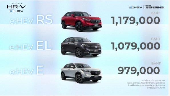 (กรุงเทพฯ – 19 พฤศจิกายน 2564) บริษัท ฮอนด้า ออโตโมบิล (ประเทศไทย) จำกัด ประกาศราคาพร้อมเปิดจำหน่าย ฮอนด้า เอชอาร์-วี อี:เอชอีวี ใหม่ อย่างเป็นทางการ โดยรุ่น e:HEV E ราคา 979,000 บาท