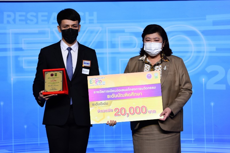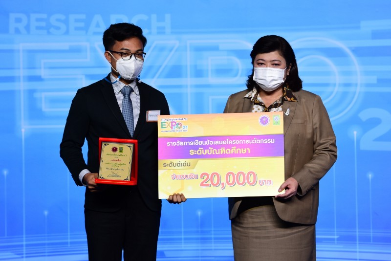 มอบรางวัลการประกวดผลงานนวัตกรรมสายอุดมศึกษา ประจำปี 2564 ซึ่งผลงานที่ได้รับรางวัล จะได้รับเงินรางวัลพร้อมเกียรติบัตร จาก ดร.วิภารัตน์ ดีอ่อง ผู้อำนวยการสำนักงานการวิจัยแห่งชาติ เป็นผู้มอบในงาน “มหกรรมงานวิจัยแห่งชาติ 2564 (Thailand Research Expo 2021)” ณ เวที Highlight Stage