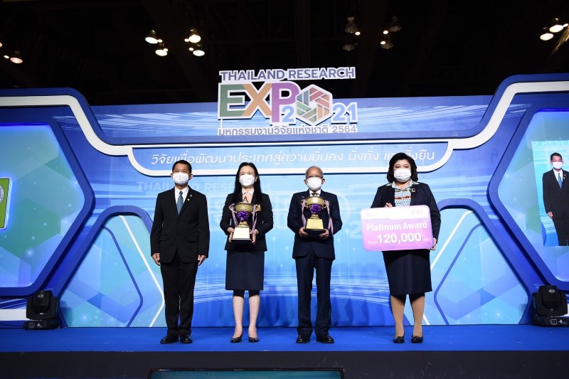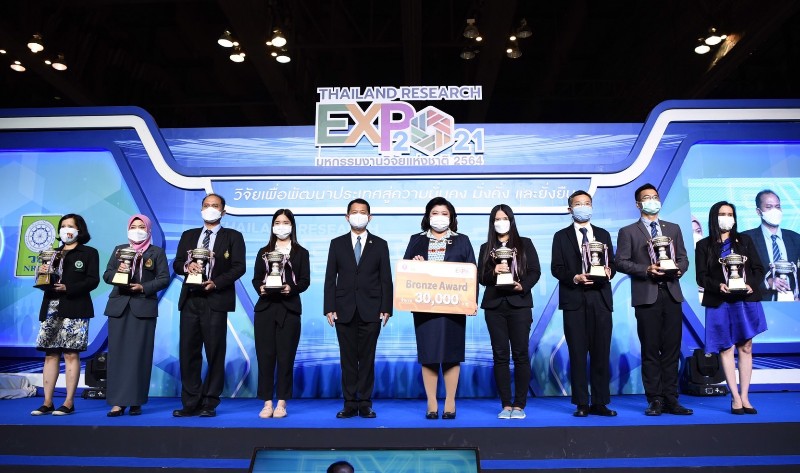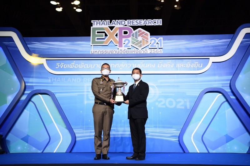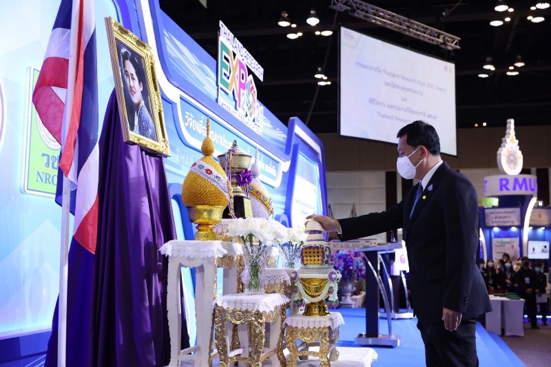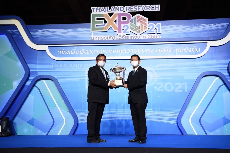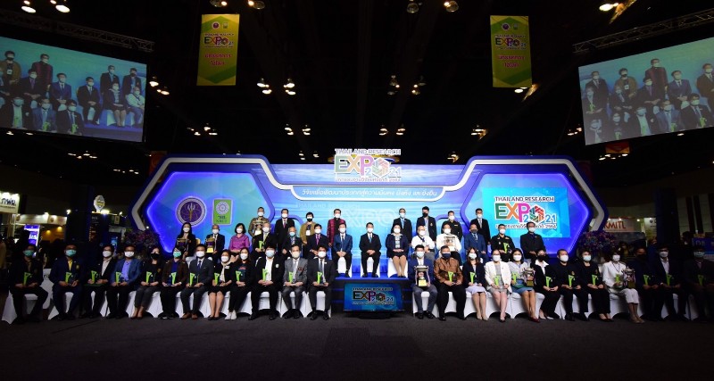 กระทรวงการอุดมศึกษา วิทยาศาสตร์ วิจัยและนวัตกรรม (อว.) โดย สำนักงานการวิจัยแห่งชาติ (วช.) จัดพิธีมอบรางวัล Thailand Research Expo 2021 Award และมอบโล่แสดงความขอบคุณแก่หน่วยงานที่นำผลงานร่วมนำเสนอ ในพิธีปิดงานมหกรรมงานวิจัยแห่งชาติ 2564 (Thailand Research Expo 2021) ซึ่งผลงานวิจัยและนวัตกรรมที่ได้รับรางวัล จะได้รับถ้วยรางวัลพระราชทานจากสมเด็จพระกนิษฐาธิราชเจ้า กรมสมเด็จพระเทพรัตนราชสุดาฯ สยามบรมราชกุมารี ถ้วยรางวัลจากนายกรัฐมนตรี ถ้วยรางวัลจากรัฐมนตรีว่าการกระทรวงการอุดมศึกษา วิทยาศาสตร์ วิจัยและนวัตกรรม และถ้วยรางวัลจากผู้อำนวยการสำนักงานการวิจัยแห่งชาติ พร้อมเงินรางวัล และเกียรติบัตร