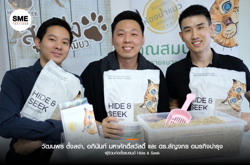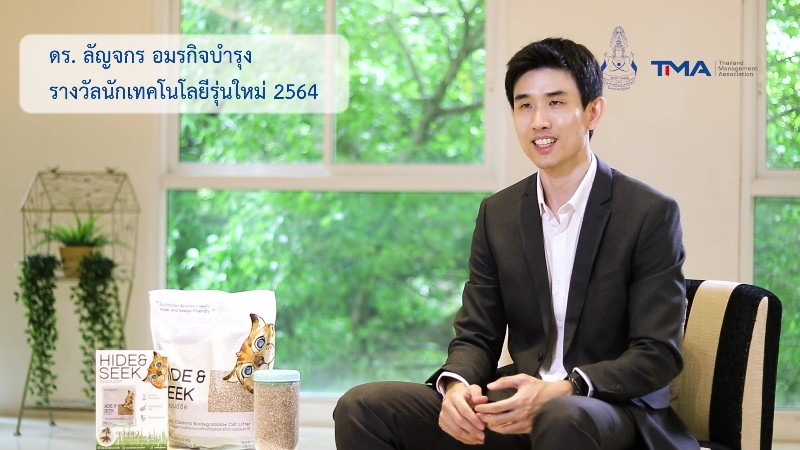 ดร.ลัญจกร อมรกิจบำรุง และคณะ เล่าต่อว่า ผลิตภัณฑ์ทรายแมวจากมันสำปะหลัง ใช้เวลาเกือบ 2 ปี
