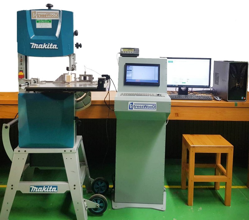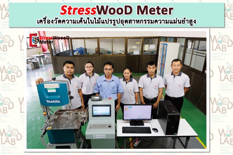 ค่าต่าง ๆ แบบอัตโนมัติ และ StressWooD-Analyzer ไว้คำนวณหาค่าความเค้นในไม้จากค่าแรงคืนตัวแบบอัตโนมัติ ระบบสามารถดำเนินการได้ง่ายในโรงงาน สามารถใช้ได้ทั้งไม้แห้งหลังการอบและไม้เปียกในระหว่างการอบ StressWooD-Meter ผ่านการทดสอบการใช้งานในบริษัทไม้ยางพาราแปรรูปจำนวน 3 บริษัท ซึ่งเครื่องมือที่สร้างขึ้น สามารถใช้ติดตามการเปลี่ยนแปลงความเค้นในไม้ในระหว่างการอบและหลังการอบได้ คาดว่าจะส่งผลให้โรงงานสามารถปรับปรุงกระบวนการอบให้มีประสิทธิภาพสูงขึ้นต่อไป นอกจากนี้ยังเป็นเครื่องมือแรกที่สามารถตรวจวัดความเค้นในไม้แปรรูปได้โดยที่ไม่จำเป็นต้องทราบค่าโมดูลัสของไม้ ซึ่งเป็นค่าที่เปลี่ยนแปลงไปตามสภาวะการอบและสภาวะบรรยากาศที่ทำการเก็บไม้ เป็นค่าที่วัดได้ยากในโรงงานอุตสาหกรรม การที่สามารถวัดความเค้นในไม้ในโรงงานอุตสาหกรรมได้ ทำให้สามารถปรับปรุงเทคนิคการอบ เทคนิคการคลายความเค้น และเทคนิคการเก็บไม้หลังการอบ ให้มีประสิทธิภาพได้ ซึ่งจะทำให้ลดการสูญเสียและลดการใช้พลังงานในการแปรรูปไม้ลงได้