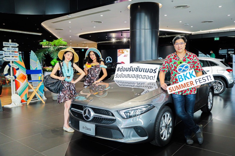 เบนซ์ บี เคเค กรุ๊ป ผู้จำหน่ายรถยนต์เมอร์เซเดส-เบนซ์ อย่างเป็นทางการ โดยได้สิทธิ์จำหน่ายครบทุกซับแบรนด์ไม่ว่าจะเป็น Mercedes-Benz, Mercedes-AMG, Mercedes-Maybach, Mercedes-EQ รวมถึง Mercedes-Certified พร้อมศูนย์บริการซ่อมสีและตัวถังแบบครบวงจร ชวนลูกค้าผ่อนคลายในหน้าร้อน พร้อมเป็นเจ้าของเบนซ์สุดหรูง่าย ๆ กับแคมเปญ “BKK SUMMER FEST 2022 ต้อนรับซัมเมอร์ รับข้อเสนอสุดฮอต” ซึ่งเป็นกิจกรรมที่ต่อยอดความสำเร็จมาจากงานบางกอก อินเตอร์เนชั่นแนล มอเตอร์โชว์ ครั้งที่ 43 โดยได้สร้างประสบการณ์สุดพิเศษให้กับลูกค้าที่เข้ามาใช้บริการที่โชว์รูม ณ เบนซ์ บีเคเค บางนา ในช่วงซัมเมอร์นี้ ด้วยการขยายโปรโมชั่นดีลดีต่อเนื่องจากงานมอเตอร์โชว์ และเตรียมของแถมมากมายไว้ให้ลูกค้า นอกจากนี้ ยังได้เชิญเซเลบริตี้หนุ่ม-สาวมากความสามารถอย่าง คุณออน-สมฤทัย สางชัยภูมิ และ คุณสุด-วัฒนพล อุทยานะกะ แห่ง SF Brandname มาร่วมรับประทาน “ข้าวเหนียวมะม่วงบีเคเค” เมนูสุดฮอตในตอนนี้ ระหว่างรอประชุมกับทีมงานที่ห้องประชุมพิเศษ ในพื้นที่ Co-Working Space ซึ่งเป็นอีกหนึ่งบริการพิเศษสำหรับลูกค้าคนพิเศษของเบนซ์ บีเคเค กรุ๊ป สามารถจองและใช้ห้องประชุมระหว่างรอรถที่นำมาเข้ารับบริการที่ศูนย์บริการได้อีกด้วย