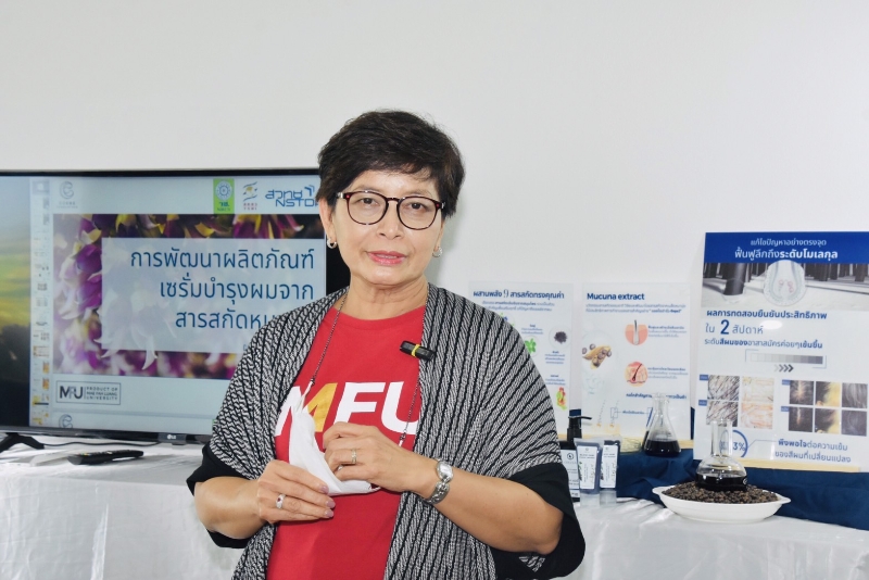 “หมามุ่ย” ได้ยินชื่อแล้วหลายคนอาจจะไม่กล้าเข้าใกล้เพราะกลัวว่าจะคันจนเกาไม่หยุด แต่จริง ๆ แล้วสรรพคุณที่ซุกซ่อนอยู่นั้นมากมายกว่าที่คิด สำนักงานการวิจัยแห่งชาติ (วช.) กระทรวงการอุดมศึกษา วิทยาศาสตร์ วิจัยและนวัตกรรม เห็นถึงประโยชน์สรรพคุณที่สำคัญจึงสนับสนุนทุนวิจัยแก่ ผู้ช่วยศาสตราจารย์ ดร.อำภา จิมไธสง สำนักวิชาวิทยาศาสตร์เครื่องสำอาง มหาวิทยาลัยแม่ฟ้าหลวง คิดค้นและพัฒนา “ผลิตภัณฑ์เซรั่มบำรุงผมจากสารสกัดหมามุ่ย” โดย บริษัท คอสเม่ อินโนเวชั่น จำกัด ได้พัฒนาเป็นผลิตภัณฑ์เกี่ยวกับเส้นผมให้กลับมาดกดำ ทดแทนการใช้ผลิตภัณฑ์การย้อมสีผม