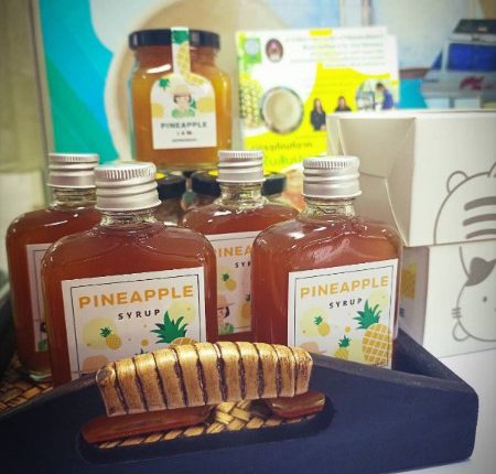 ขณะเดียวกันเพื่อการใช้ประโยชน์อย่างคุ้มค่าตามแนวคิด zero-waste หรือ “ของเสียเหลือศูนย์” ทีมวิจัยยังได้นำวัตถุดิบที่เหลือจากกระบวนการทำไซรัป มาต่อยอดแปรรูปเป็นแยมสับปะรด และคุกกี้ไฟเบอร์สับปะรด เพื่อเพิ่มมูลค่าให้กับ food waste โดยเฉพาะแกนสับปะรดที่ปกติชาวบ้านจะทิ้งไปในกระบวนการแปรรูปนี้มีเอนไซม์โบรมีเลน ซึ่งมีสมบัติช่วยย่อยอาหาร เพิ่มภูมิต้านทานให้กับร่างกาย ซึ่งผลิตภัณฑ์ชุมชนเหล่านี้ใช้วัตถุดิบธรรมชาติล้วน และไม่ใส่วัตถุกันเสีย นอกจากนี้ทีมวิจัยยังนำน้ำสับปะรดมาพัฒนาเป็นเครื่องดื่ม “คอมบูชา” ที่มีจุลินทรีย์โพรไบโอติกส์ มีส่วนช่วยรักษาสมดุลของระบบทางเดินอาหารและระบบขับถ่าย เป็นเครื่องดื่มสุขภาพที่กำลังอยู่ในกระแสนิยมของผู้บริโภคปัจจุบัน สร้างความหลากหลายให้กับผลิตภัณฑ์ชุมชน