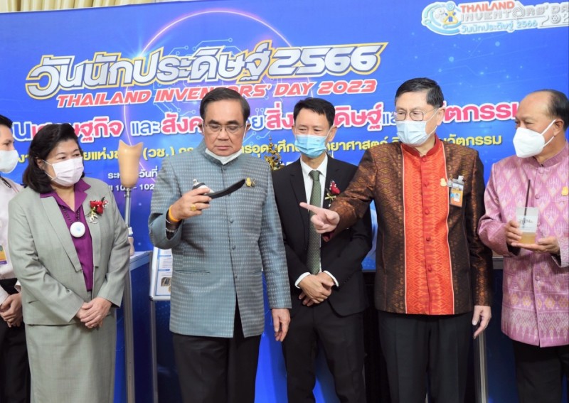 วันที่ 31 มกราคม 2566 ก่อนการประชุมคณะรัฐมนตรี พลเอก ประยุทธ์ จันทร์โอชา นายกรัฐมนตรีและรัฐมนตรีว่าการกระทรวงกลาโหม พร้อมคณะรัฐมนตรี เยี่ยมชมสิ่งประดิษฐ์และนวัตกรรม ที่จะนำไปจัดแสดงในงาน “วันนักประดิษฐ์ 2566” (Thailand Inventors’ Day 2023) โดยมีศาสตราจารย์พิเศษ ดร.เอนก เหล่าธรรมทัศน์ รัฐมนตรีว่าการกระทรวงการอุดมศึกษา วิทยาศาสตร์ วิจัยและนวัตกรรม นำเยี่ยมชม และ ศาสตราจารย์ นายแพทย์สิริฤกษ์ ทรงศิวิไล ปลัดกระทรวงการอุดมศึกษา วิทยาศาสตร์ วิจัยและนวัตกรรม นำการเยี่ยมชมและให้การต้อนรับ พร้อมนี้ ดร.วิภารัตน์ ดีอ่อง ผู้อำนวยการสำนักงานการวิจัยแห่งชาติ และคณะนักประดิษฐ์ นักวิจัย ร่วมนำเสนอผลงาน
