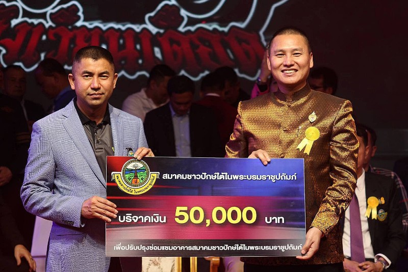 และในวันนี้ มิสเตอร์ ลี่ หลิงไฮ (Mr. LI Ling Hai) ประธานบริหาร พร้อมคณะผู้บริหารบริษัท ลิชิ กรุ๊ปไชน่า ไทยทัวร์ และ บริษัทในเครือฯ สนับสนุนซื้อบัตรเข้าร่วมชม การจัดศึกมวยการกุศลในครั้งเป็นจำนวน 50ใบ มูลค่า 200,000 บาท