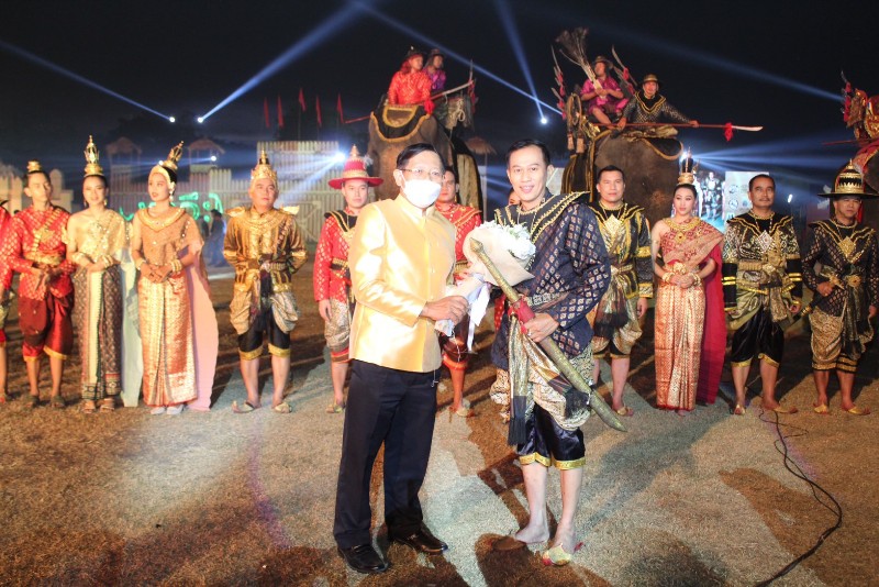 โดยได้รับเกียรติจากข้าราชการในจังหวัดสุพรรณบุรี, ดารานัก นักเรียนนักศึกษากว่า 4,000 ชีวิต ร่วมแสดงในบทบาทต่างๆกัน ซึ่งในวันนี้มี นายณัฐภัทร สุวรรณประทีป ผู้ว่าราชการจังหวัดสุพรรณบุรี มอบหมายให้ นายธีรยุทธ์ จันทร์ดิษฐวงษ์ รองผู้ว่าราชการจังหวัดสุพรรณบุรี ให้เกียรติมาร่วมแสดง พร้อมด้วยปลัดจังหวัดสุพรรณบุรี, หัวหน้าส่วนราชการสุพรรณบุรี, ข้าราชการ-นักเรียนนักศึกษาในจังหวัดสุพรรณบุรี, ดารานักแสดงนับพันชีวิต มาร่วมแสดงน้อมรำลึกเพื่อเทิดพระเกียรติพระองค์ดำ โดยมีท่านอาจารย์พรชัย ประมวลสุข ผู้กำกับการแสดง ท่านประมวลภาพเหตุการณ์จากประวัติศาสตร์เมื่อ 400 กว่าปี นำมาเล่าขานส่งต่อให้กับประชาชนชาวไทย ที่ได้มาเที่ยวชมการแสดงอันอลังการยิ่งใหญ่ในครั้งนี้