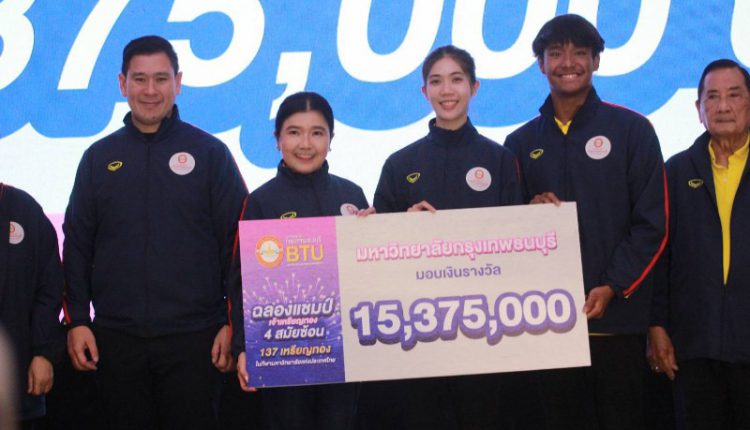 “ม.กรุงเทพธนบุรี” ฉลองแชมป์เจ้าเหรียญทอง 4 สมัยซ้อน 137 เหรียญทอง กีฬามหาลัยฯ ครั้งที่ 48 “อธิการบดี” สุดปลื่ม !! มอบเงิน กว่า 15 ล้าน เป็นขวัญกำลังใจให้ทัพนักกีฬา …