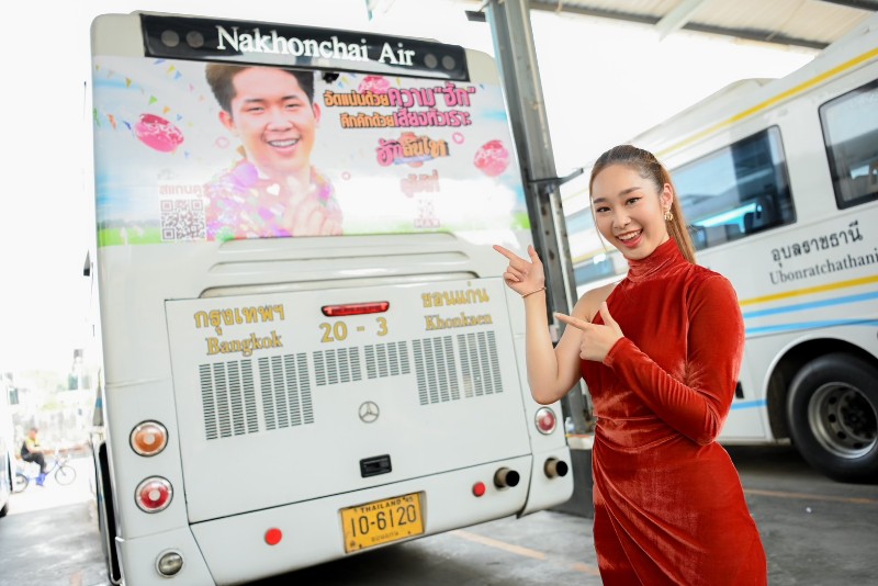 ร่วมส่งมอบความสุขและเสียงหัวเราะให้ไม่เหงาตลอดการเดินทาง ด้วยการเข้าร่วมกิจกรรมติดสติ๊กเกอร์หนังไทยสุดฮิตสุดฮาท้ายรถโดยสารประจำทาง 3 เรื่องได้แก่ ขุนแหย , สายสืบหน้าฮ่าน , ฮักล้นไห โดยเริ่มต้นเส้นทางการเดินรถที่กรุงเทพมหานคร สู่ปลายทางหลายจังหวัด เช่น เชียงใหม่ เชียงราย ขอนแก่น อุดรธานี นครราชสีมา และจันทบุรี เพื่อส่งมอบความสุขตลอดการเดินทางช่วงเทศกาลสงกรานต์