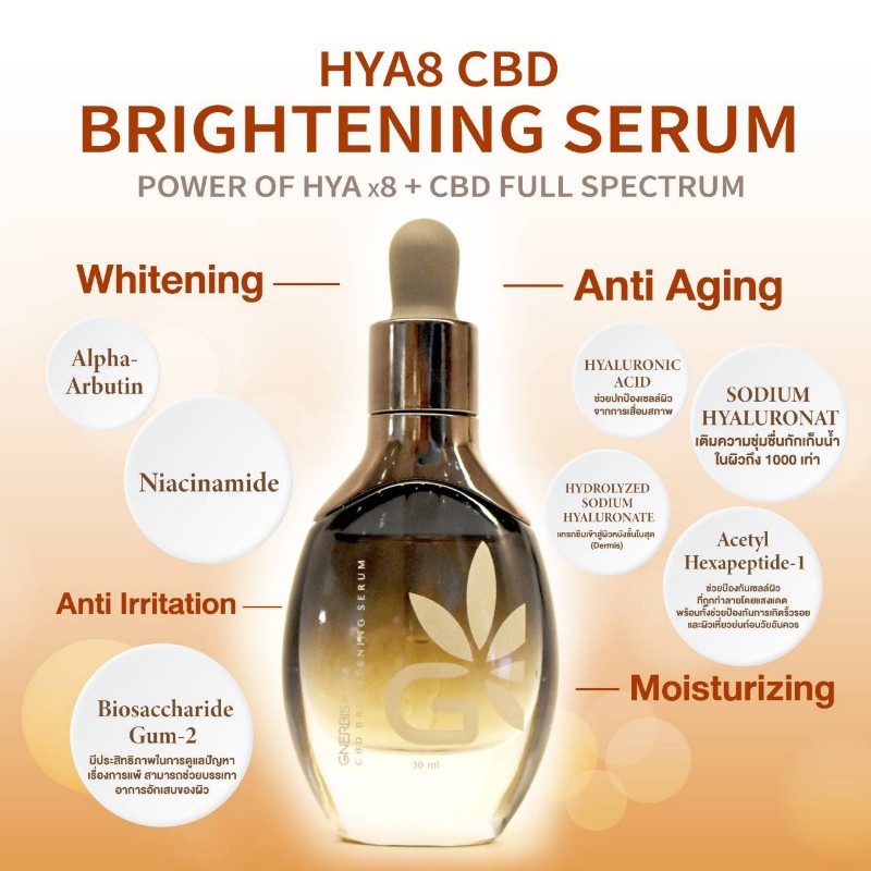 Gnerbis HYA8 CBD brightening serum ผลิตภัณฑ์จาก บริษัท ทีเอชซีจี กรุ๊ป จำกัด ได้รับเลือกเป็นหนึ่งใน “ผลิตภัณฑ์สมุนไพรคุณภาพประจำปี 2566” รับรองโดยกรมการแพทย์แผนไทยและแพทย์ทางเลือก และคว้ารางวัลยอดเยี่ยมอีกมากมายในระดับเอเชีย