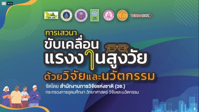 วันที่ 11 พฤษภาคม 2566 สำนักงานการวิจัยแห่งชาติ (วช.) กระทรวงการอุดมศึกษา วิทยาศาสตร์ วิจัยและนวัตกรรม จัดการเสวนาออนไลน์ เรื่อง “ขับเคลื่อนแรงงานสูงวัย ด้วยวิจัยและนวัตกรรม” โดยมี ดร.วิภารัตน์ ดีอ่อง ผู้อำนวยการสำนักงานการวิจัยแห่งชาติ เป็นประธานเปิดการเสวนาออนไลน์ ในรูปแบบ Video Conference ผ่านโปรแกรม Zoom และ Facebook live ซึ่งการเสวนาครั้งนี้ เป็นเวทีแลกเปลี่ยนความรู้ และเผยแพร่ผลงานวิจัยและนวัตกรรม เพื่อสร้างการรับรู้และผลักดันองค์ความรู้จากงานวิจัยและนวัตกรรมในประเด็นแรงงานผู้สูงอายุไปสู่การใช้ประโยชน์ที่เหมาะสม โดยผู้ร่วมเสวนาเป็นวิทยากรและผู้ทรงคุณวุฒิที่มีประสบการณ์ในด้านแรงงานผู้สูงอายุ ประกอบด้วย นพ.ภูษิต ประคองสาย มูลนิธิสถาบันวิจัยและพัฒนาผู้สูงอายุไทย ให้เกียรติเป็นผู้ดำเนินการเสวนา พร้อมด้วย คุณอาภา รัตนพิทักษ์ จากกรมกิจการผู้สูงอายุ ผศ. ดร.ศุภชัย ศรีสุชาติ มหาวิทยาลัยธรรมศาสตร์ รศ. ดร.เฉลิมพล แจ่มจันทร์ มหาวิทยาลัยมหิดล และ คุณสุมิตรา วงภักดี บริษัท เทอร่า มีเดีย แอนด์ คอนซัลติ้ง จำกัด ซึ่งมีผู้เข้าร่วมรับฟังการเสวนาผ่านระบบออนไลน์ทั้ง 2 ช่องทาง จำนวน 281 ราย