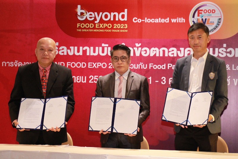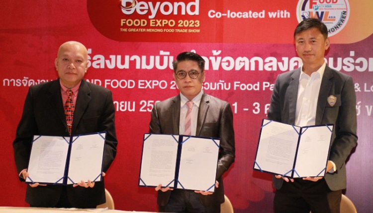 วันที่ 11 พฤษภาคม 2566, ขอนแก่น – งาน Beyond Food Expo 2023 งานแสดงสินค้าด้านอาหารและนวัตกรรมแห่งลุ่มแม่น้ำโขงแบบครบวงจร ผนึกกำลังเสริมความแข็งแกร่งร่วมกับงาน Food Pack Warehouse & Logistics Expo 2023 งานแสดงนวัตกรรม เทคโนโลยีแปรรูปอาหาร เครื่องดื่ม บรรจุภัณฑ์ และโลจิสติกส์ครบวงจร พร้อมจัดงานในวันที่ 7 – 9 กันยายน 2566 ณ อาคาร 1 – 3 ศูนย์ประชุมและแสดงสินค้านานาชาติขอนแก่น คาดว่าจะมีผู้ร่วมแสดงสินค้ากว่า 150 บริษัทและแบรนด์ พร้อมดึงดูดผู้ซื้อและผู้ประกอบการร่วมชมงานได้รวมกันมากกว่า 8,500 ราย