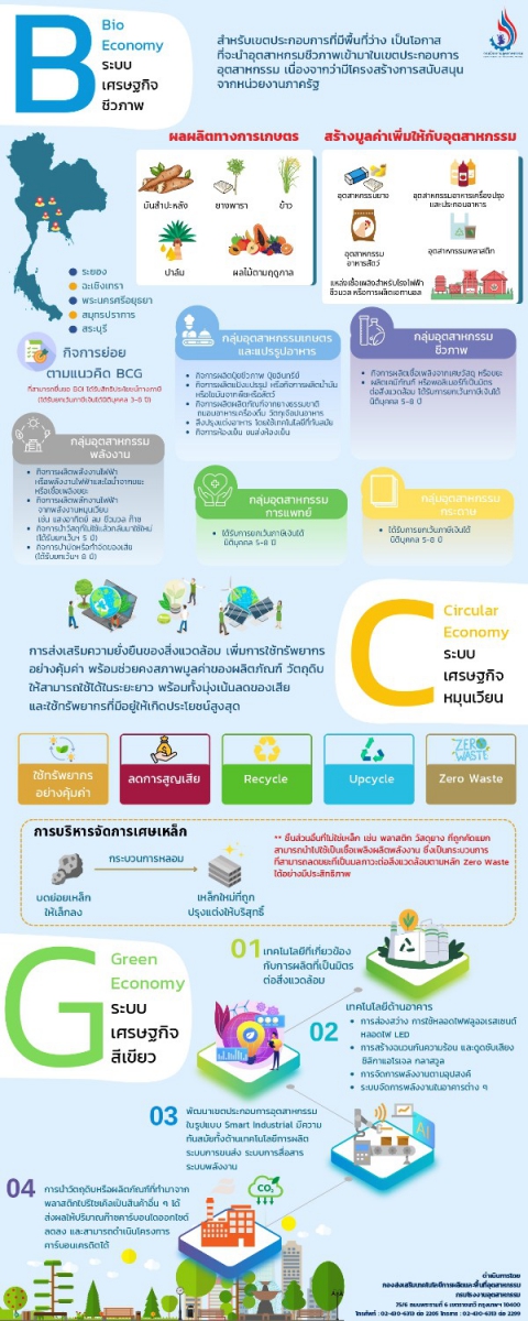 นายวีรพงษ์ กล่าวเพิ่มว่า ผลการศึกษาเขตประกอบการอุตสาหกรรมตามแนวคิด เศรษฐกิจสู่การพัฒนาที่ยั่งยืน หรือ BCG Economy Bio-Circular-Green Economy) พบว่า