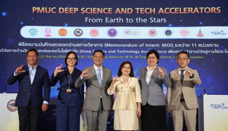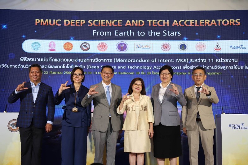 “บพข. ซึ่งถือเป็นตัวกลางเชื่อมโยงร่วมกับ 11 หน่วยงานเร่งรัดงานวิจัยทางด้านวิทยาศาสตร์และเทคโนโลยีเชิงลึก จึงได้จัดให้มีพิธีลงนามบันทึกแสดงเจตจำนงทางวิชาการ (Memorandum of Intent: MOI) ระหว่าง บพข. กับ 11 หน่วยงานดังกล่าวขึ้น เพื่อเร่งรัดงานวิจัยทางด้านวิทยาศาสตร์และเทคโนโลยีเชิงลึกไปสู่การใช้ประโยชน์เชิงพาณิชย์ มีการแบ่งปันทรัพยากร เช่น โครงสร้างพื้นฐาน และระบบนิเวศที่เอื้อต่อการสร้างผลิตภัณฑ์ หรือ บริการเชิงพาณิชย์ แหล่งฝึกอบรมบุคลากร ผู้เชี่ยวชาญ รวมไปถึงผู้ประกอบการ ให้สามารถสร้างธุรกิจได้จากงานวิจัยและนวัตกรรม”