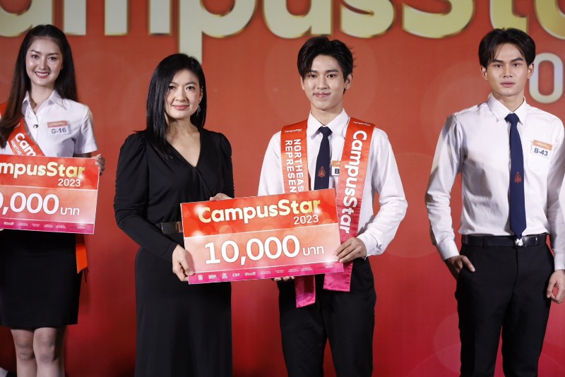 ซึ่งผลการประกวด ผู้ชนะการประกวด “Campus Star 2023” (แคมปัส สตาร์ 2023) ภาคตะวันออกเฉียงเหนือ ฝ่ายชายและฝ่ายหญิง ได้แก่ B-27 OKP เอกพัน ขาวล้วน (ไทเกอร์) มหาวิทยาลัยราชภัฏนครราชสีมา, B-28 นายวิษณุ อุปชา (เวฟ) มหาวิทยาลัยราชภัฏศรีสะเกษ, B-33 นายธารธร ทองหอม (กาแฟ) มหาวิทยาลัยเทคโนโลยีสุรนาร, B–40 นายภาวัติ เนตรวงษ์ (สกาย) มหาวิทยาลัยขอนแก่น, B–43 นายชาธิปัตย์ สายเมือง (ฟลุ๊ค) มหาวิทยาลัยขอนแก่น, G-08 น.ส.ญาดาภรณ์ บุญศรี (แนนนี่) มหาวิทยาลัยราชภัฏอุบลราชธานี, G-12 น.ส.ศรัณญา ชมเชย (แอม) วิทยาลัยอาชีวศึกษาขอนแก่น, G-16 น.ส.กานต์พิชชา ศิริโชคทวีทรัพย์ (ฟาง) มหาวิทยาลัยขอนแก่น, G-18 น.ส.เกวลิน ใจเมือง (สเกล) มหาวิทยาลัยขอนแก่น และ G-31 วิชาดา ชาหล่อน (นุ้ย) มหาวิทยาลัยราชภัฏเลย โดยทุกคนรับมอบสายสะพายพร้อมทุนการศึกษาคนละ 10,000 บาท และเป็นตัวแทนภาคตะวันออกเฉียงเหนือ ร่วมการประกวด “Campus Star 2023” (แคมปัส สตาร์ 2023) ต่อไป ติดตามรายละเอียดการประกวดเพิ่มเติม ได้ที่ https://www.facebook.com/CampusStars