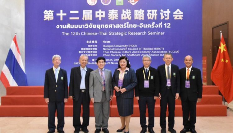 มหาวิทยาลัยหัวเฉียว (Huaqiao University) แห่งสาธารณรัฐประชาชนจีน ร่วมกับ สำนักงานการวิจัยแห่งชาติ(วช.) กระทรวงการอุดมศึกษา วิทยาศาสตร์ วิจัยและนวัตกรรม พร้อมด้วย สมาคมวัฒนธรรมและเศรษฐกิจไทย-จีน และสมาคมจีนเพื่อการศึกษาเอเชียตะวันออกเฉียงใต้ (China Society for Southeast Asian Studies) จัดการสัมมนาวิจัยยุทธศาสตร์ไทย-จีน ครั้งที่ 12” (The 12th Thai – Chinese Strategic Research Seminar) ภายใต้หัวข้อเรื่อง “ร่วมสร้างประชาคมจีน-ไทยที่มีอนาคตร่วมกันในยุคใหม่ (Jointly Building a China-Thailand Community with a Shared Future in the New Era)” ระหว่างวันที่ 26-27 พฤศจิกายน 2566 ณ มหาวิทยาลัยหัวเฉียว เมืองเซี่ยเหมิน มณฑลฝูเจี้ยน สาธารณรัฐประชาชนจีน