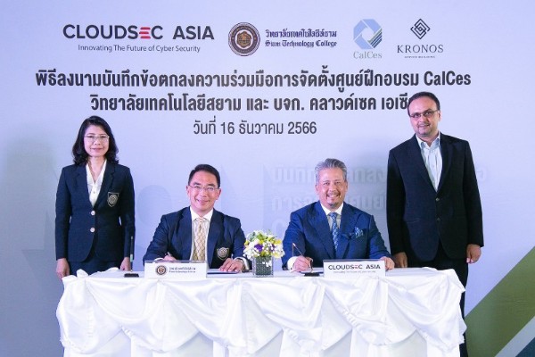 บริษัท คลาวด์เซค เอเซีย จำกัด และ วิทยาลัยเทคโนโลยีสยาม จัดพิธีลงนามความร่วมมือจัดตั้งศูนย์ฝึกอบรม CalCes บุกเบิกเปิดหลักสูตรปริญญาโทด้านความมั่นคงปลอดภัยไซเบอร์ (Master of Science in Professional Cybersecurity) และหลักสูตรระยะสั้นด้านความมั่นคงปลอดภัยไซเบอร์ (Short Courses) สำหรับผู้บริหาร ตั้งเป้าผลิตบุคลากรผู้เชี่ยวชาญปฏิบัติงานได้จริง ป้อนองค์กรภาครัฐและเอกชน พร้อมเปิดศูนย์ความปลอดภัยไซเบอร์ช่วยเหลือสังคม ห่างภัยคุกคามทางไซเบอร์