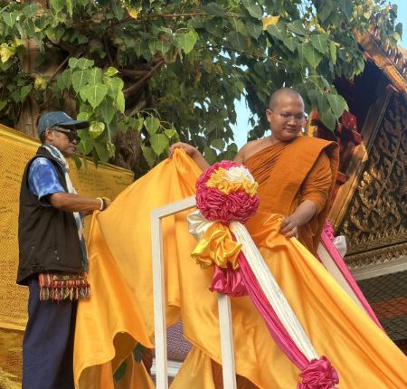 ร่วมบุญห่มผ้าต้นพระศรีมหาโพธิ์อายุ ๒๐๕ ปี