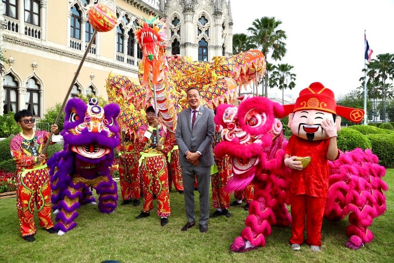 เช้าวันนี้ (26 ม.ค.)ณ สนามหญ้าหน้าตึกไทยคู่ฟ้า ทำเนียบรัฐบาล นางสาวฐาปนีย์ เกียรติไพบูลย์ ผู้ว่าการการท่องเที่ยวแห่งประเทศไทย นำคณะผู้จัดงานตรุษจีนเยาวราช เข้าพบนายเศรษฐา ทวีสิน นายกรัฐมนตรีและรัฐมนตรีว่าการกระทรวงการคลัง เพื่อมอบเสื้อตรุษจีน ซึ่งมีสัญลักษณ์ “มังกร” จากภาพวาดฝีพระหัตถ์ สมเด็จพระกนิษฐาธิราชเจ้า กรมสมเด็จพระเทพรัตนสุดาฯ สยามบรมราชกุมารี เพื่อประชาสัมพันธ์การจัดงานเทศกาลตรุษจีน ประจำปี 2567 ณ บริเวณถนนเยาวราช กรุงเทพมหานคร จัดขึ้นระหว่างวันที่ 10-11 กุมภาพันธ์ 2567 ซึ่งวันตรุษจีนปีนี้ตรงกับวันเสาร์ที่ 10 กุมภาพันธ์ 2567