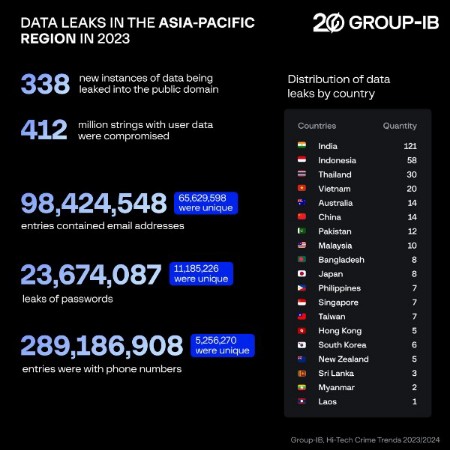ในปี 2023 มีการตรวจพบข้อมูลรั่วไหลสู่สาธารณะในภูมิภาคเอเชียแปซิฟิกเพิ่มขึ้น 338 รายการ แต่มีเพียงฐานข้อมูลแค่ 5% เท่านั้นมีมีข้อมูลรหัสผ่านอยู่ด้วย โดยในกรณีข้อมูลรั่วไหลเหล่านี้ มีข้อความมากกว่า 412 ล้านรายการที่มีข้อมูลของผู้ใช้งานอยู่ถูกเข้าถึง ซึ่งอินเดีย, อินโดนีเซีย และประเทศไทยนั้นตกเป็นเป้าของการโจมตีลักษณะนี้มากที่สุด โดยมีข้อมูลที่รั่วไหล 121 รายการ, 58 รายการ และ 30 รายการตามลำดับ