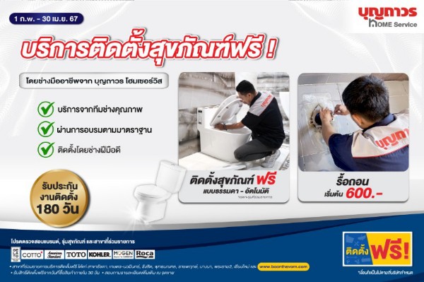 บุญถาวร เอาใจผู้บริโภคเปิดตัวบริการติดตั้งสุขภัณฑ์ โดยทีมช่างผู้เชียวชาญ พร้อมรับประกัน 180 วัน
