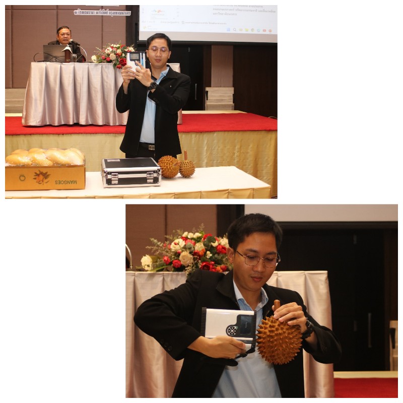 ด้าน รองศาสตราจารย์ ดร.พีระศักดิ์ ฉายประสาท ผู้อำนวยการศูนย์รวมผู้เชี่ยวชาญด้านเทคโนโลยีหลังการเก็บเกี่ยวและแปรรูปผลไม้ กล่าวว่า ศูนย์เชี่ยวชาญด้านเทคโนโลยีฯ ได้รับการสนับสนุนจาก วช. ให้จัดการอบรมให้กับเกษตรกร และผู้ประกอบการ เนื่องจากประเทศไทยมีการผลิตผลไม้ที่เป็นพืชเศรษฐกิจเป็นจำนวนมากและมีมูลค่าการส่งออกผลไม้สูง ได้แก่ ทุเรียนหมอนทอง มะม่วงน้ำดอกไม้สีทอง มะพร้าวน้ำหอม มังคุด ลำไย และส้ม ผลไม้บางชนิดให้ผลผลิตตลอดทั้งปี ส่งผลให้มีผลผลิตมีจำนวนมากในประเทศและส่งออกไปยังต่างประเทศได้มากขึ้น แต่ในการส่งออกมักประสบปัญหาคุณภาพของผลไม้ไม่ได้มาตรฐาน เช่น ปัญหาทุเรียนอ่อน มะม่วงสุกมีรสเปรี้ยวจัด ผลไม้อื่น ๆ มีรสชาติไม่ตรงกับความต้องการของผู้บริโภค เนื่องจากการเก็บเกี่ยวอ่อนเกินไป หากมีการใช้เทคโนโลยีที่เหมาะสมมาช่วยในการวิเคราะห์ความสุกแก่ของผลไม้ ร่วมกับการจัดการหลังการเก็บเกี่ยวที่มีคุณภาพก็จะช่วยแก้ปัญหาได้ ซึ่งเทคโนโลยี ที่ได้รับความนิยมและมีการใช้แพร่หลายในต่างประเทศ คือ การประยุกต์ใช้เทคนิคเนียร์อินฟราเรด สเปกโตรสโกปีเพื่อวัดความสุกแก่ของผลไม้ ซึ่งเป็นกรรมวิธีที่สามารถตรวจสอบความแก่และคุณภาพของผลไม้ได้อย่างรวดเร็ว ไม่ทำลายสายผลผลิต และปลอดภัยต่อผู้ใช้งาน