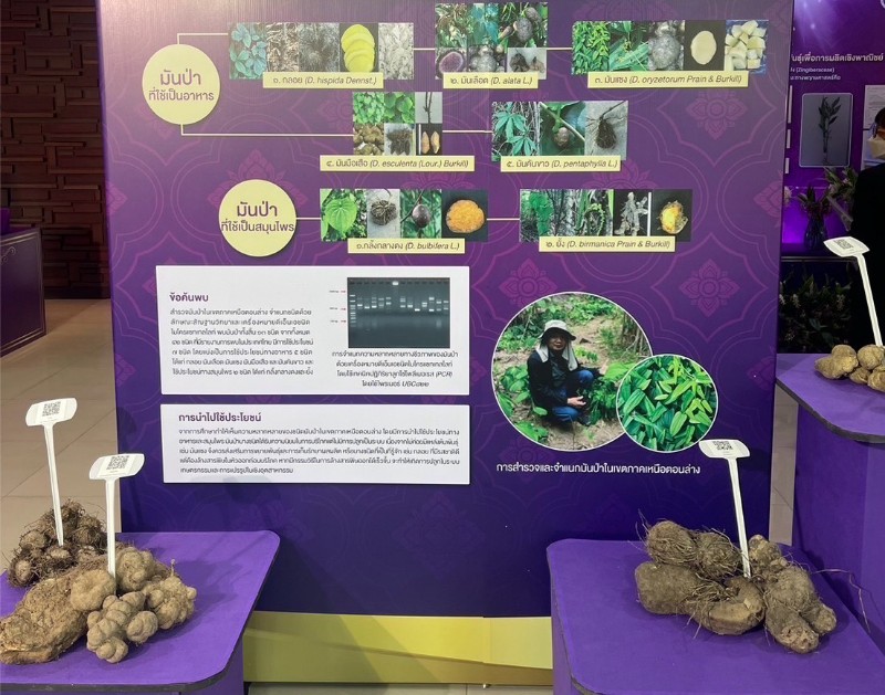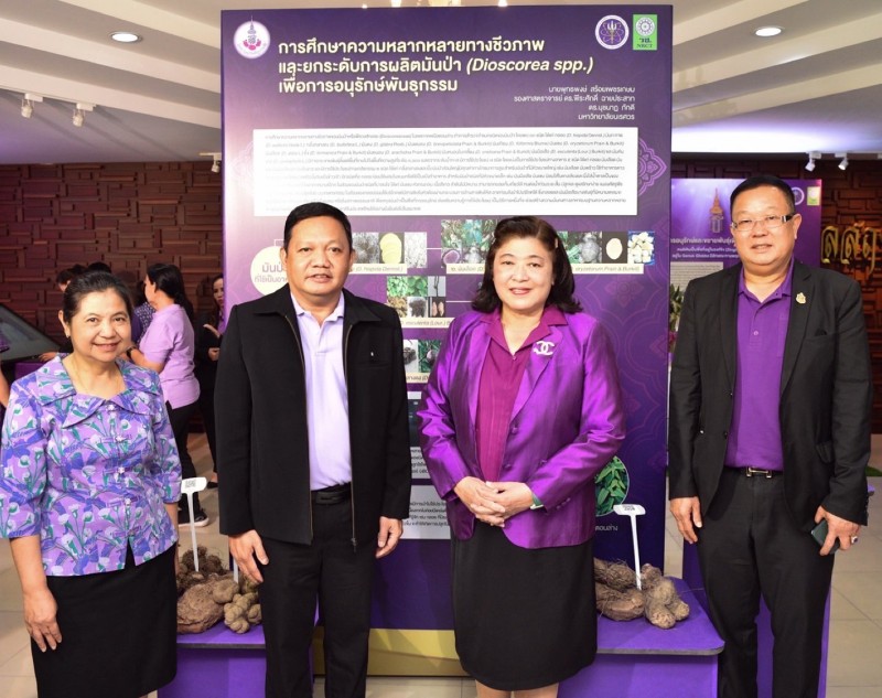ดร.วิภารัตน์ ดีอ่อง ผู้อำนวยการสำนักงานการวิจัยแห่งชาติ กล่าวว่า วช. ภายใต้กระทรวงการอุดมศึกษา วิทยาศาสตร์ วิจัยและนวัตกรรม ในฐานะหน่วยงานสนองพระราชดำริโครงการอนุรักษ์พันธุกรรมพืชอันเนื่องมาจากพระราชดำริ ตั้งแต่ปี พ.ศ. 2535 อย่างต่อเนื่องจนถึงปัจจุบัน จึงสนับสนุนทุนวิจัยให้ นายพุทธพงษ์ สร้อยเพชรเกษม นักวิชาการเกษตร รองศาสตราจารย์พีระศักดิ์ ฉายประสาท แห่งคณะเกษตรศาสตร์ ทรัพยากรธรรมชาติ และสิ่งแวดล้อม มหาวิทยาลัยนเรศวร ทำการศึกษาวิจัยเรื่องการศึกษาความหลากหลายทางชีวภาพและขยายพันธุ์มันม่วง (Dioscorea alata L.) เพื่อการใช้ประโยชน์อย่างยั่งยืน สนองโครงการอนุรักษ์พันธุกรรมพืชอันเนื่องมาจากพระราชดำริ สมเด็จพระเทพรัตนราชสุดาฯ สยามบรมราชกุมารี (อพ.สธ.) เพื่อศึกษาความหลากหลายทางชีวภาพของมันป่าด้วยเทคนิคเครื่องหมายดีเอ็นเอ ศึกษาวิธีการขยายพันธุ์และวิธีการปลูกมันป่าเพื่อให้ได้ผลผลิตที่ดี เพื่อศึกษาวิธีการทำเมล็ดเทียมสำหรับการอนุรักษ์พันธุกรรมและขยายพันธุ์มันป่า พร้อมวิเคราะห์ปริมาณสาระสำคัญ ได้แก่ saponin และ diosgenin