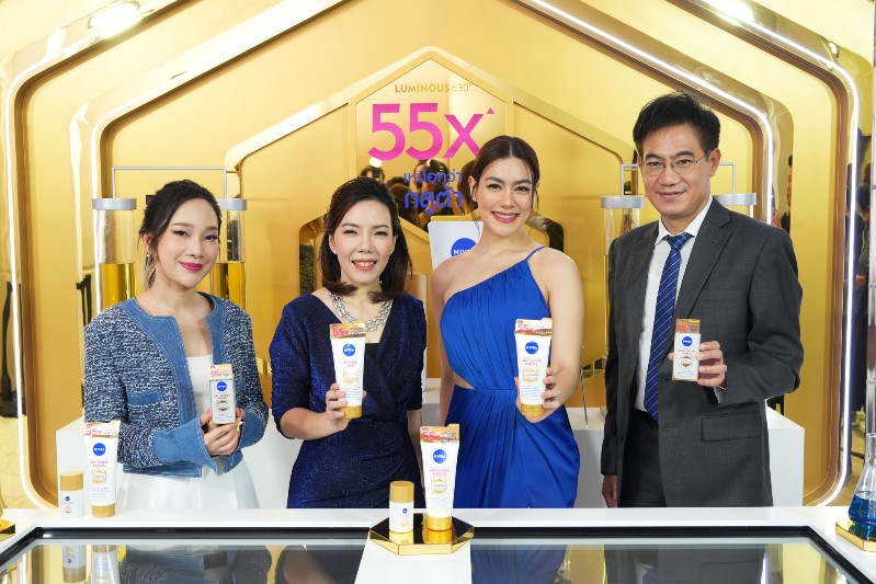 คุณภวิกา ทองทวี ผู้จัดการฝ่ายการตลาด และพัฒนาธุรกิจ ผลิตภัณฑ์ดูแลผิวและกันแดดนีเวีย ภูมิภาคอาเซียน (สองจากซ้าย) พร้อมด้วย คิมเบอร์ลี่ แอน โวลเทมัส (สองจากขวา) ตัวแทนสาวยุคใหม่กับไลฟ์สไตล์สุดเฮลท์ตี้ เภสัชกรหญิงพิชชาพร กล้าหาญ (ซ้ายสุด) ผู้จัดการฝ่ายคุณภาพและพัฒนาผลิตภัณฑ์นีเวีย ภูมิภาคอาเซียน และนพ. ชลธวัช สุวรรณปิยะศิริ (ขวาสุด) หัวหน้าศูนย์ผิวหนังความงามและเส้นผม โรงพยาบาลเมดพาร์ค ร่วมเปิดตัว “นีเวีย ลูมินัส630 บอดี้” (NIVEA Luminiuos630 Body) นวัตกรรมชุดผลิตภัณฑ์บำรุงผิวกายล่าสุด เพื่อรับมือกับปัญหาผิวแตกลาย ไม่เรียบเนียนด้วยสารลูมินัส630 เอกสิทธิ์ของนีเวีย