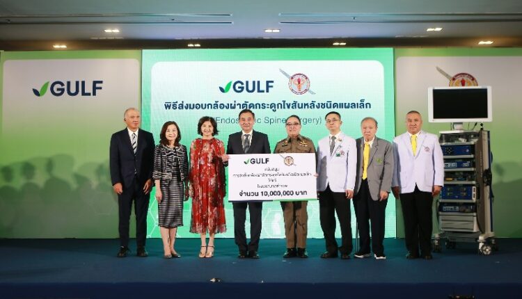 บริษัท กัลฟ์ เอ็นเนอร์จี ดีเวลลอปเมนท์ จำกัด (มหาชน) (GULF) สนับสนุนกล้องผ่าตัดกระดูกไขสันหลังชนิดแผลเล็กแก่ศูนย์ผ่าตัดผ่านกระดูกสันหลังและระบบประสาท โรงพยาบาลตำรวจ เพื่อเพิ่มขีดความสามารถของโรงพยาบาลในการผ่าตัดกระดูกสันหลังชนิดแผลเล็ก ทำให้ผู้ป่วยฟื้นตัวได้เร็วขึ้น ลดเวลาการพักฟื้นที่โรงพยาบาล และลดโอกาสที่จะเกิดผลข้างเคียง ตอกย้ำพันธกิจของ GULF ภายใต้แนวคิด “Powering the Future, Empowering the People” ตาม 3 แกนหลัก คือ สาธารณสุข การศึกษา และสิ่งแวดล้อม มุ่งดำเนินธุรกิจควบคู่ไปกับการยกระดับคุณภาพชีวิตของคนในสังคมอย่างยั่งยืน
