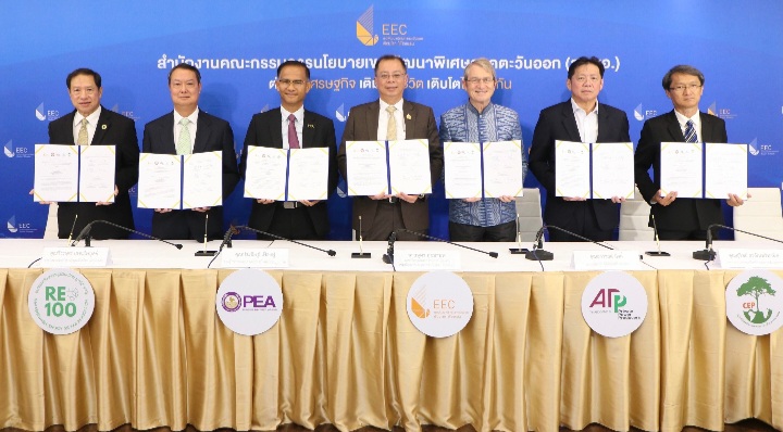 อีอีซี ลงนามบันทึกข้อตกลงความร่วมมือ (MOU) โครงการศึกษาแนวทางการสนับสนุนให้ผู้ผลิตไฟฟ้าเอกชนสามารถจ่ายไฟฟ้าพลังงานสะอาดให้กับผู้ประกอบกิจการในเขตพัฒนาพิเศษภาคตะวันออก (EEC) ผ่านระบบโครงข่ายไฟฟ้าใหม่ ร่วมกับ นายประดิษฐ์ เฟื่องฟู รองผู้ว่าการยุทธศาสตร์การไฟฟ้าส่วนภูมิภาค นายฮาราลด์ ลิงค์ นายกสมาคมผู้ผลิตไฟฟ้าเอกชน นายวีระเดช เตชะไพบูลย์ นายกสมาคมพลังงานหมุนเวียนไทย (อาร์อี 100) นายสุวิทย์ ธรณินทร์พานิช ประธานกรรมการมูลนิธิพลังงานสะอาดเพื่อประชาชน และ นายนที สิทธิประศาสน์ ประธานกลุ่มอุตสาหกรรมพลังงานหมุนเวียน และนายดอน ทยาทาน เลขาธิการกลุ่มอุตสาหกรรมผู้ผลิตไฟฟ้า เพื่อสร้างความร่วมมือระหว่าง อีอีซี และหน่วยงานภาครัฐและเอกชนทั้ง 5 หน่วยงานดังกล่าว ขับเคลื่อนให้เกิดการลงทุน และสนับสนุนการใช้ไฟฟ้าจากพลังงานสะอาด นำไปสู่การพัฒนาพื้นที่อีอีซีอย่างยั่งยืน ณ ห้อง Conference 1-2 สำนักงานอีอีซี