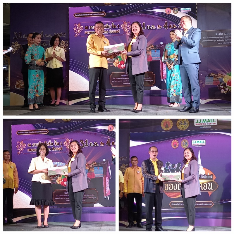 วันนี้สำนักงานพาณิชย์จังหวัดนครศรีธรรมราช ได้นำสินค้าดีสินค้าเด่นของจังหวัดมาถึงกรุงเทพมหานครเพื่อเพิ่มช่องทางการตลาดให้กับผลิตภัณฑ์ชุมชน สินค้าที่มีอัตลักษณ์ของจังหวัด, สินค้า GI, สินค้าเกษตร และสินค้าเกษตรแปรรูป ตลอดจนประชาสัมพันธ์สร้างโอกาสให้กับผลิตภัณฑ์ของหวัดนครศรีธรรมราชให้เป็นที่รู้จักมากขึ้นจำนวน 50 คูหา อาทิ ส้มโอทับทิมสยามปากพนัง (GI), มังคุดเขาคีรีวง (GI), เครื่องจักสานย่านลิเภา, ผลิตภัณฑ์จากกระจูด, เครื่องเงิน ถมเงิน-ถมทอง, ภาพแกะหนังตะลุง, ผลไม้ตามฤดูกาล, อาหาร, เครื่องดื่ม และอื่น ๆ อีกมากมาย