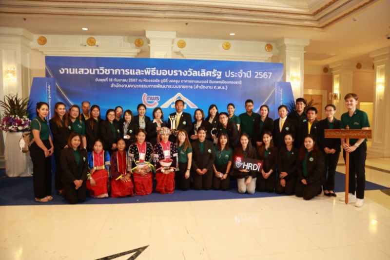 นายวิรัตน์ ปราบทุกข์ ผู้อำนวยการสถาบันวิจัยและพัฒนาพื้นที่สูง กล่าวว่า สวพส. เป็น 1 ใน 3 หน่วยงาน ที่ได้รับรางวัลเกียรติยศเลิศรัฐ ประจำปี 2567 จากสำนักงาน ก.พ.ร. ซึ่งตลอดระยะเวลาที่ผ่านมา สวพส. มุ่งสืบสาน รักษา ต่อยอดงานโครงการหลวง ภายใต้หลักการพัฒนาทางเลือกบนพื้นที่สูง (UNGPs on AD) ขยายผลสำเร็จสู่ชุมชนบนพื้นที่สูงที่ห่างไกลและทุรกันดารของประเทศไทย ให้ได้รับการพัฒนาและส่งเสริมอาชีพที่เป็นมิตรต่อสิ่งแวดล้อมทั้งในและนอกภาคเกษตร แก้ไขปัญหาความยากจนของเกษตรกร พัฒนาคุณภาพชีวิตความเป็นอยู่ที่ดีขึ้นให้ได้รับโอกาสอย่างเสมอภาค สนับสนุนชุมชนในการอนุรักษ์ฟื้นฟูป่าต้นน้ำ และปลูกป่าเพื่อเพิ่มพื้นที่สีเขียว ด้วยการมีส่วนร่วมของชุมชน และร่วมบูรณาการกับทุกภาคส่วน ตลอดจนการมุ่งสู่การลดก๊าซเรือนกระจกภายใต้บริบทและสถานการณ์การเปลี่ยนแปลงให้คนสามารถอยู่ร่วมกับสิ่งแวดล้อมได้อย่างยั่งยืน เป็นผลให้ สวพส. ได้รับรางวัลเลิศรัฐสาขาอื่นๆ รวม 7 รางวัล ได้แก่