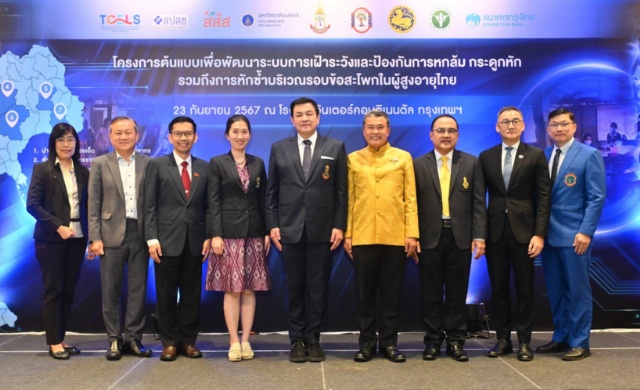 งานแถลงข่าวความร่วมมือในโครงการต้นแบบเพื่อพัฒนาระบบการเฝ้าระวัง และป้องกันการหกล้ม กระดูกหัก รวมถึงการหักซ้ำ บริเวณรอบข้อสะโพกในผู้สูงอายุไทย