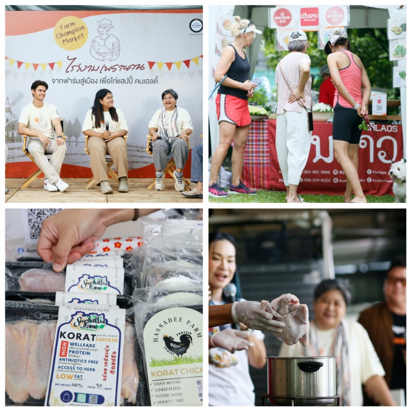 ภายในงานจัดนิทรรศการเรียนรู้เกี่ยวกับโครงการฟาร์มแชมเปี้ยน และประโยชน์ของการเลี้ยงไก่สวัสดิภาพสูง ถอดบทเรียนผ่านหัวข้อเสวนาที่เข้มข้น เรื่อง “ไก่โคราชสวัสดิภาพสูง: ผลกระทบต่อสัตว์ คน และสิ่งแวดล้อม” นำโดย ผศ.ดร.วิทธวัช โมฬี หัวหน้างานวิจัยของโครงการฟาร์มแชมเปี้ยน มหาวิทยาลัยเทคโนโลยีสุรนารี, แผ้ว ภิรมย์ ผู้จัดการแคมเปญระบบอาหาร องค์กรพิทักษ์สัตว์แห่งโลก ประเทศไทย และ ผู้คร่ำหวอดในวงการเกษตรอินทรีย์ อาทิ Influencer เจนนิเฟอร์ อินเนส-เทเลอร์