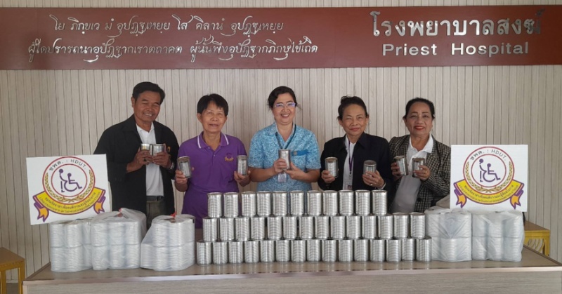 ชมรมจิตอาสาเพื่อคนพิการและผู้ด้อยโอกาส (ชพด.) มอบเงินบริจาคให้แก่มูลนิธิร่วมกตัญญู และมอบข้าวโพดกระป๋องให้โรงพยาบาลสงฆ์