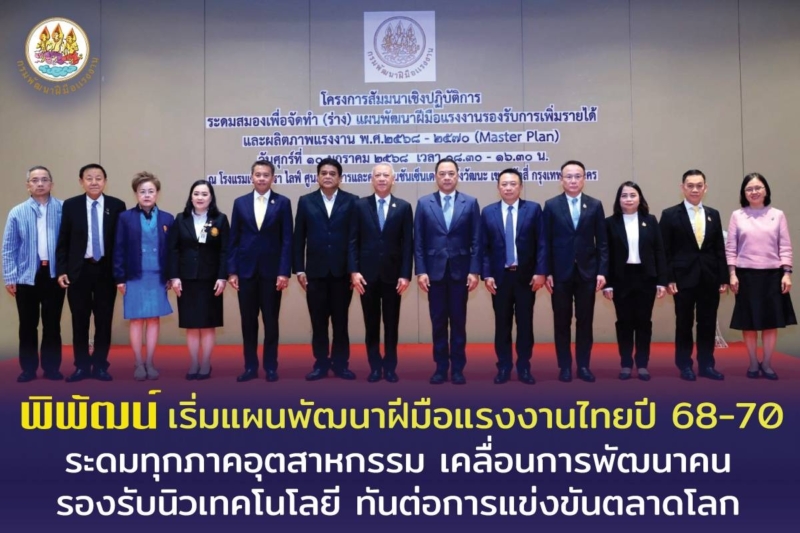 วันที่ 10 มกราคม 2568 นายพิพัฒน์ รัชกิจประการ รัฐมนตรีว่าการกระทรวงแรงงาน เป็นประธานเปิดโครงการสัมมนาเชิงปฏิบัติการระดมสมองเพื่อจัดทำ (ร่าง) แผนพัฒนาฝีมือแรงงานรองรับการเพิ่มรายได้และผลิตภาพแรงงาน พ.ศ. 2568 – 2570 (Master Plan) โดยมี ผู้บริหารกระทรวงแรงงาน นายเดชา พฤกษ์พัฒนรักษ์ อธิบดีกรมพัฒนาฝีมือแรงงาน พร้อมด้วย รองประธานคณะกรรมาธิการการแรงงาน สภาผู้แทนราษฎร , รองประธานสภาอุตสาหกรรมแห่งประเทศ , รองประธานและประธานคณะกรรมการรัฐวิสาหกิจสมาพันธ์เอสเอ็มอีไทย เข้าร่วมด้วย ณ โรงแรมเซ็นทารา ไลฟ์ ศูนย์ราชการและคอนเวนชันเซ็นเตอร์ แจ้งวัฒนะ กรุงเทพฯ