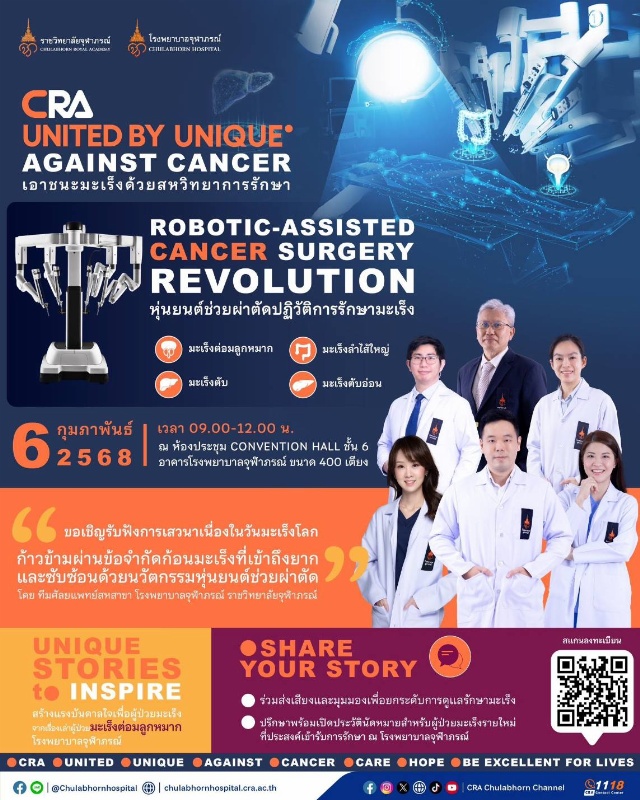 #CRAUnitedbyUniqueAgainstCancer #หุ่นยนต์ช่วยผ่าตัดปฏิวัติการรักษามะเร็ง #โรงพยาบาลจุฬาภรณ์
